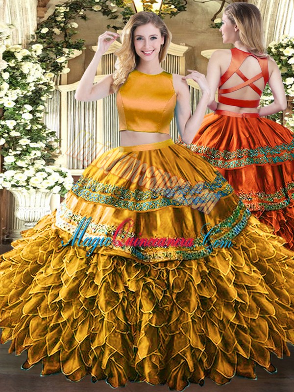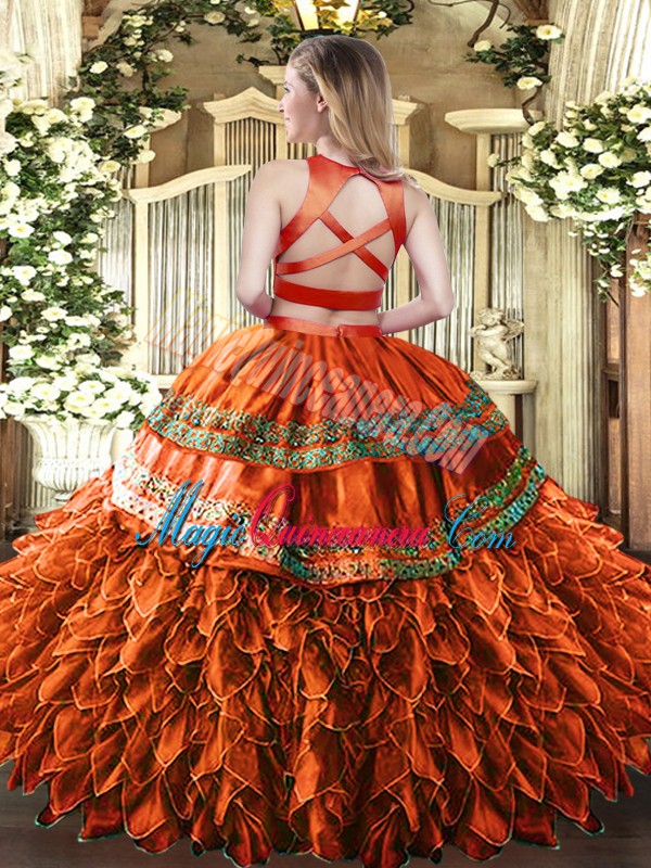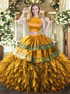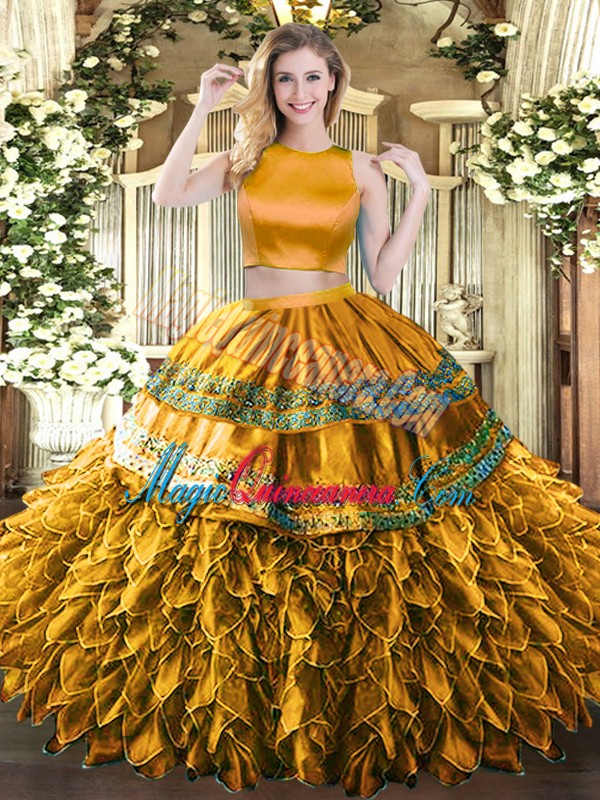 Best Selling Tulle Sleeveless Floor Length Quince Ball Gowns and Ruffles and Sequins