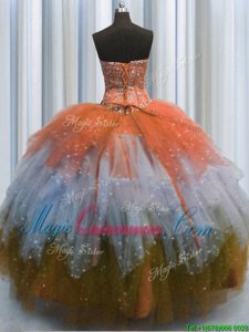 Superior Visible Boning Sweetheart Sleeveless Lace Up 15th Birthday Dress Multi-color Tulle