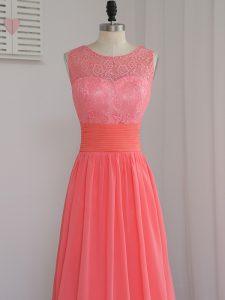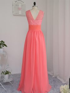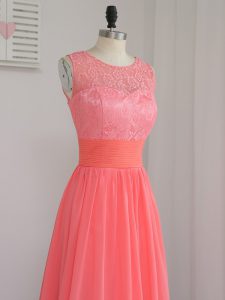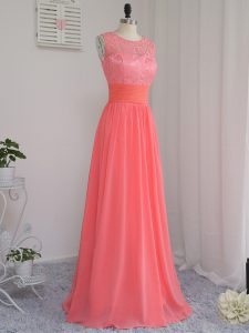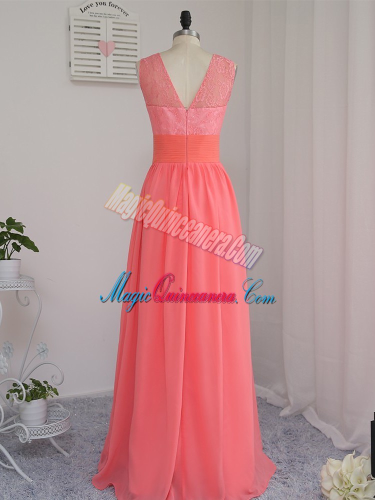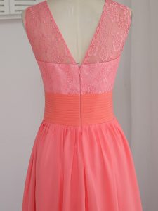 Best Selling Watermelon Red Sleeveless Chiffon Zipper Court Dresses for Sweet 16 for Prom and Party and Wedding Party