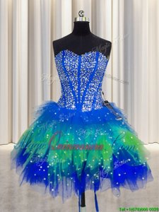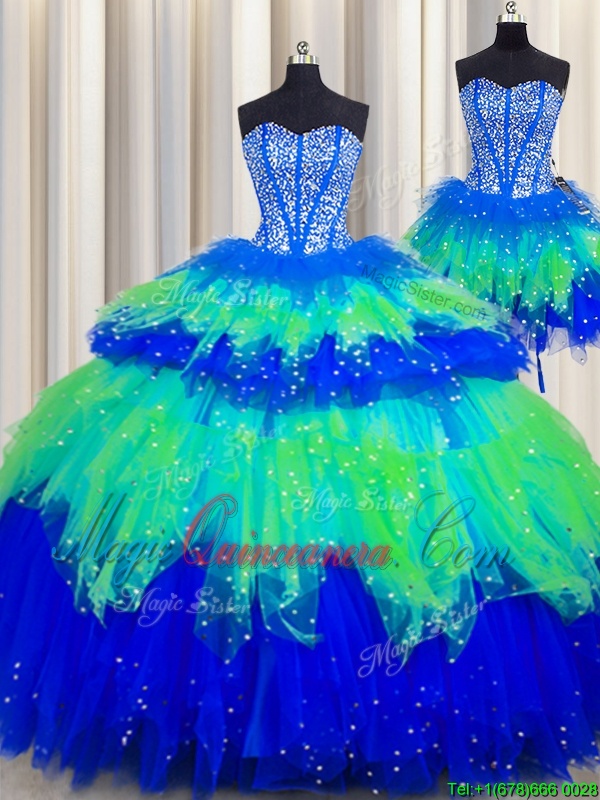 Best Three Piece Visible Boning Multi-color Lace Up 15th Birthday Dress Beading and Ruffles and Ruffled Layers and Sequins Sleeveless Floor Length
