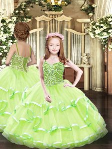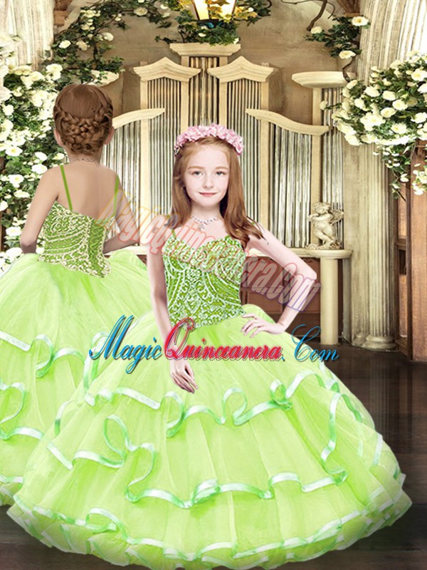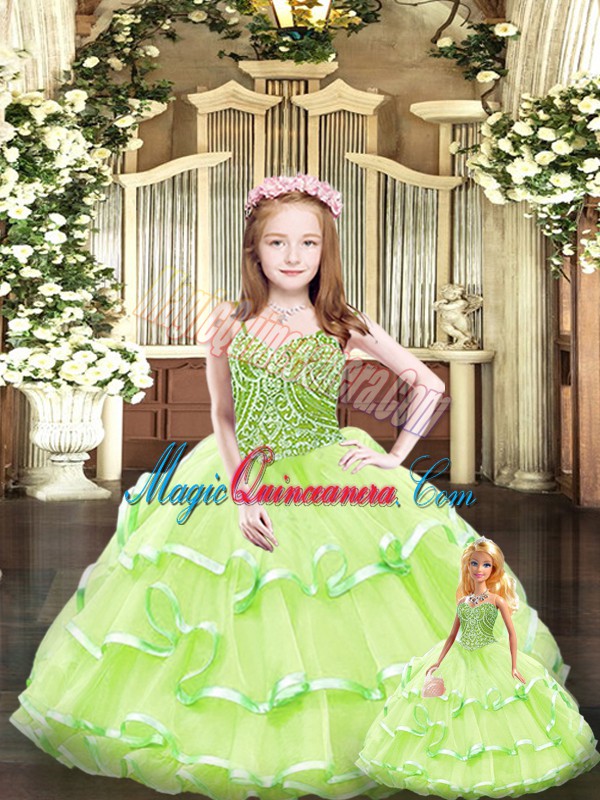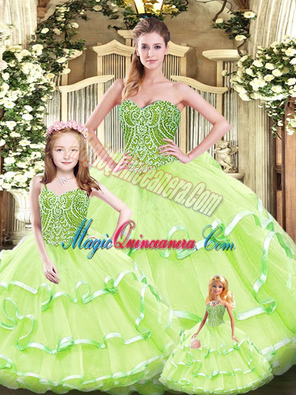 Best Yellow Green Sweetheart Neckline Beading and Ruffled Layers Vestidos de Quinceanera Sleeveless Lace Up
