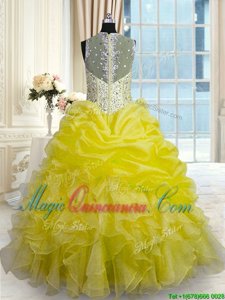 Best Yellow Sleeveless Organza Zipper Quinceanera Dress for Military Ball and Sweet 16 and Quinceanera
