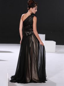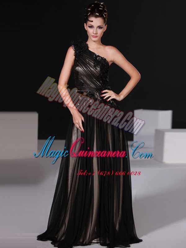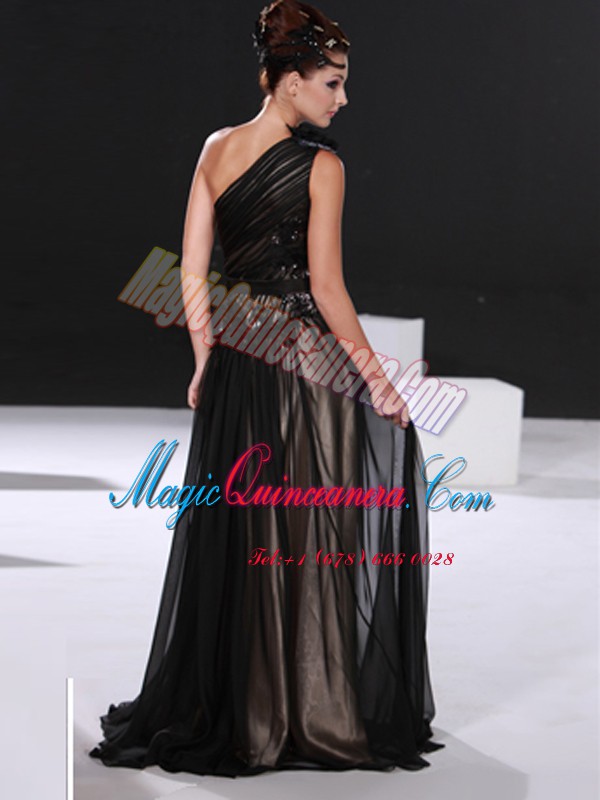 Black Column/Sheath Chiffon One Shoulder Sleeveless Beading Floor Length Zipper Homecoming Dress