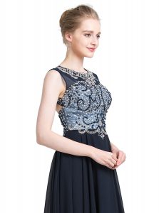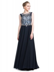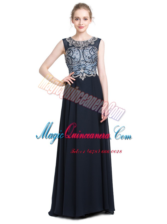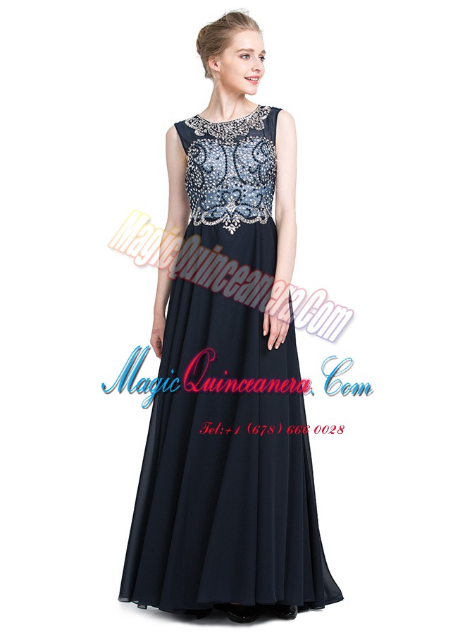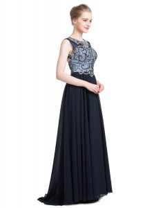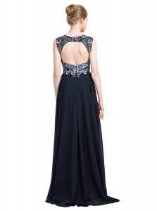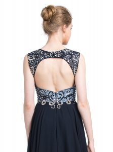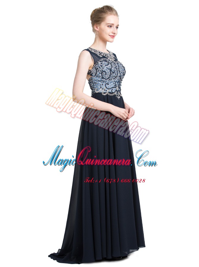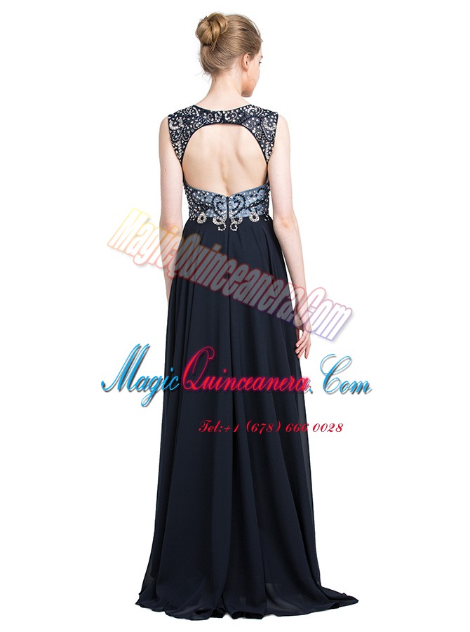Black Prom and Party and For with Beading Scoop Sleeveless Brush Train Zipper