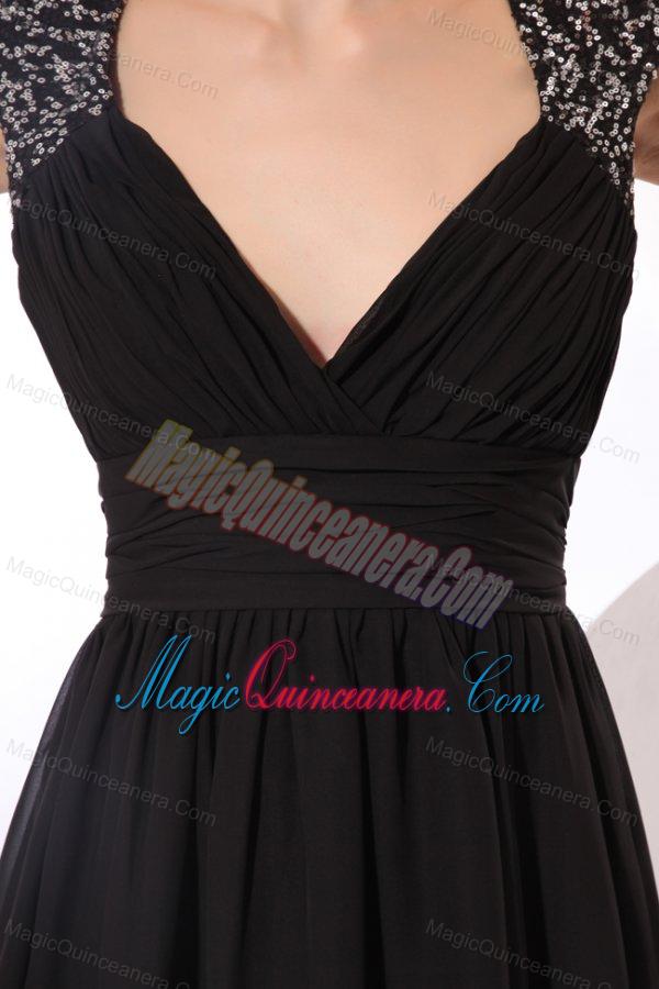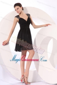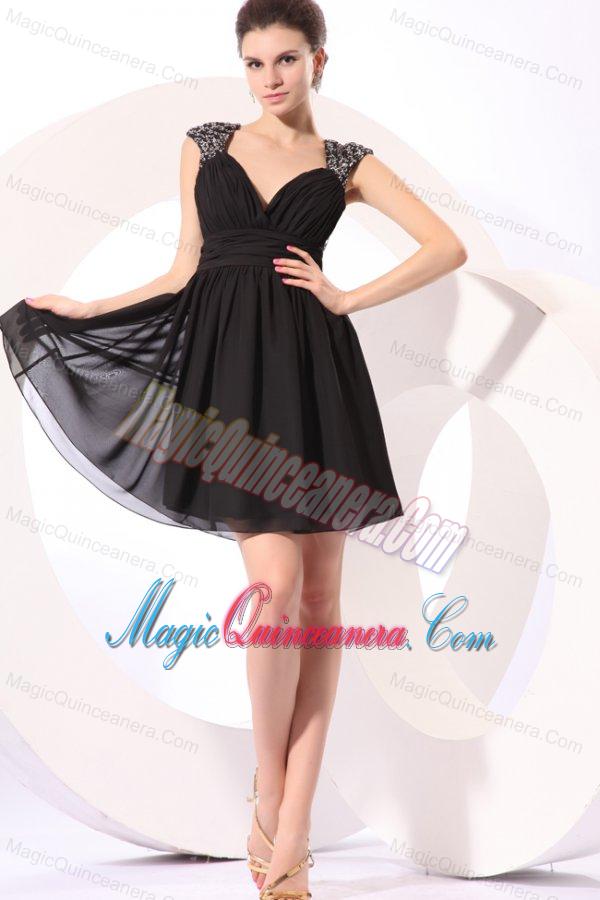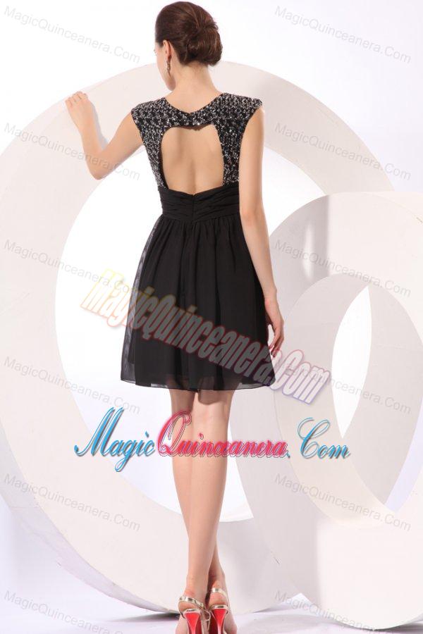 celebrity dress in the united states, Black Straps Beaded Short Dama Dresses with Mini-length