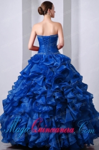 shimmering sleeveless quinceaneras dress, Blue A-Line / Princess Sweetheart Floor-length Organza Beading and Rufffles New style Quinceanea Dress