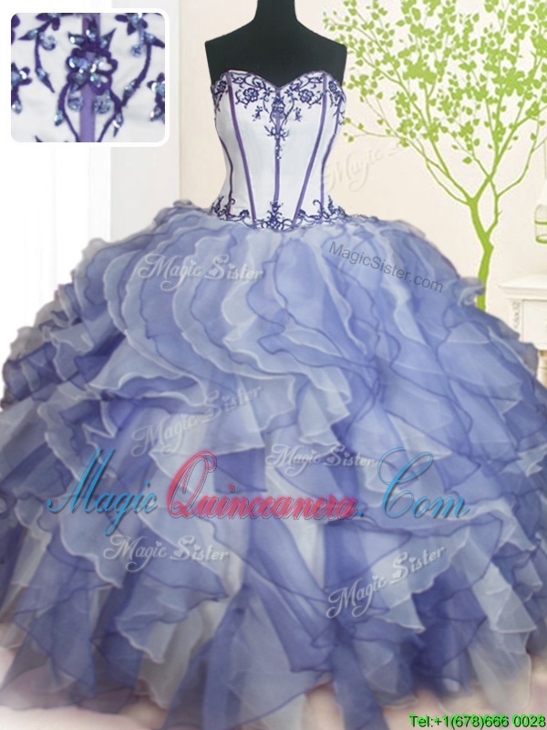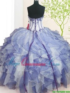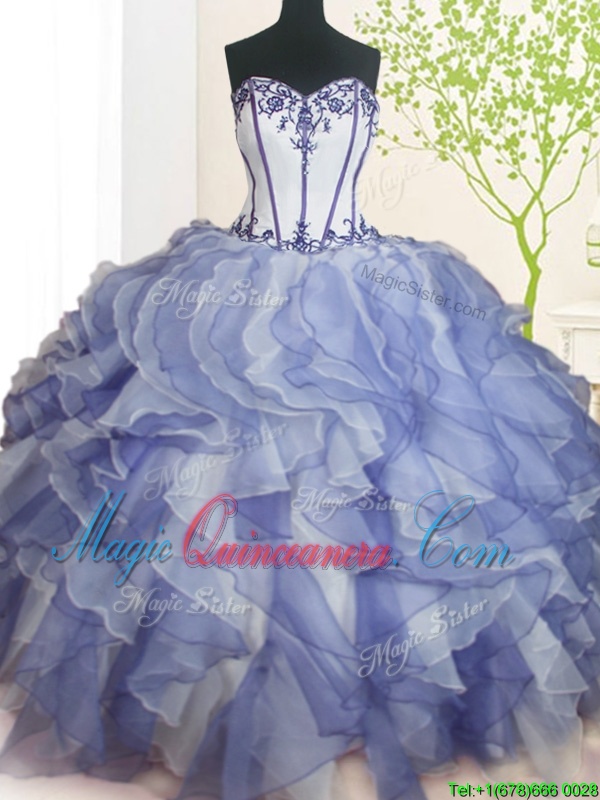 Blue And White Sleeveless Beading and Ruffles Floor Length Sweet 16 Quinceanera Dress