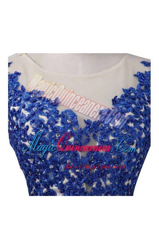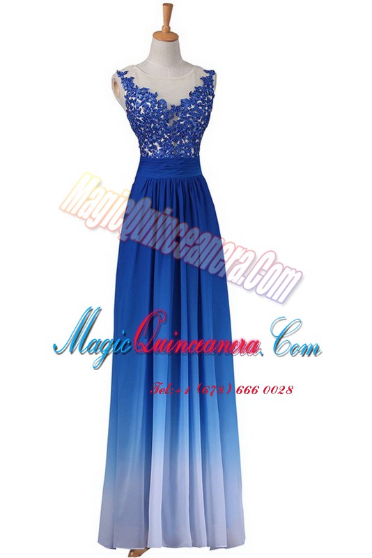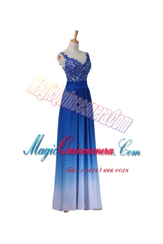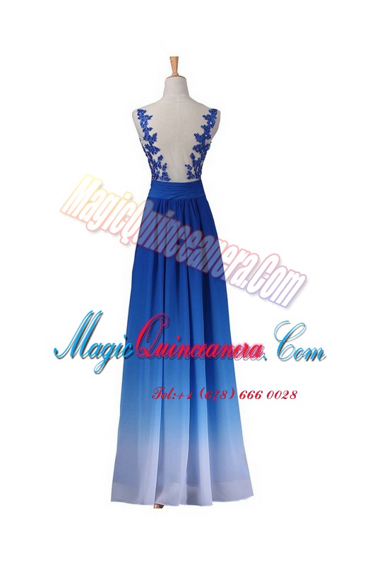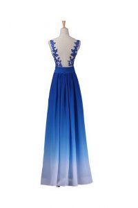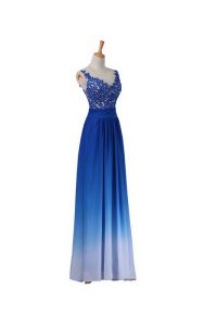 Blue Backless V-neck Lace Mother Of The Bride Dress Chiffon Sleeveless