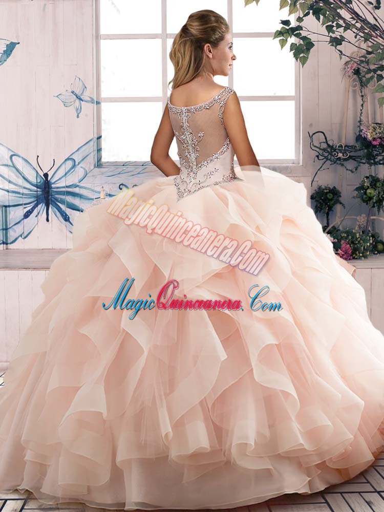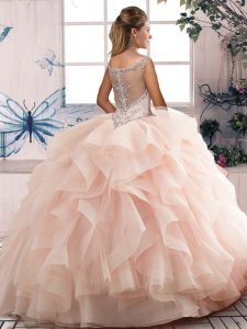 Blue Ball Gowns Beading and Ruffles Quince Ball Gowns Zipper Organza Sleeveless Floor Length