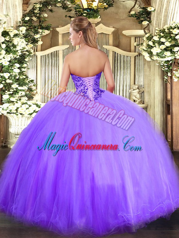 Blue Ball Gowns Tulle Sweetheart Sleeveless Appliques Floor Length Lace Up 15 Quinceanera Dress