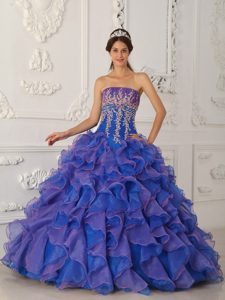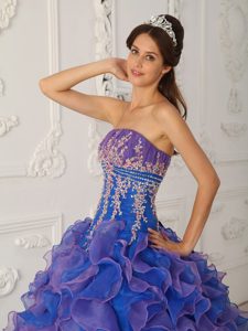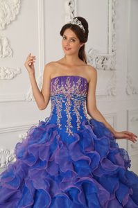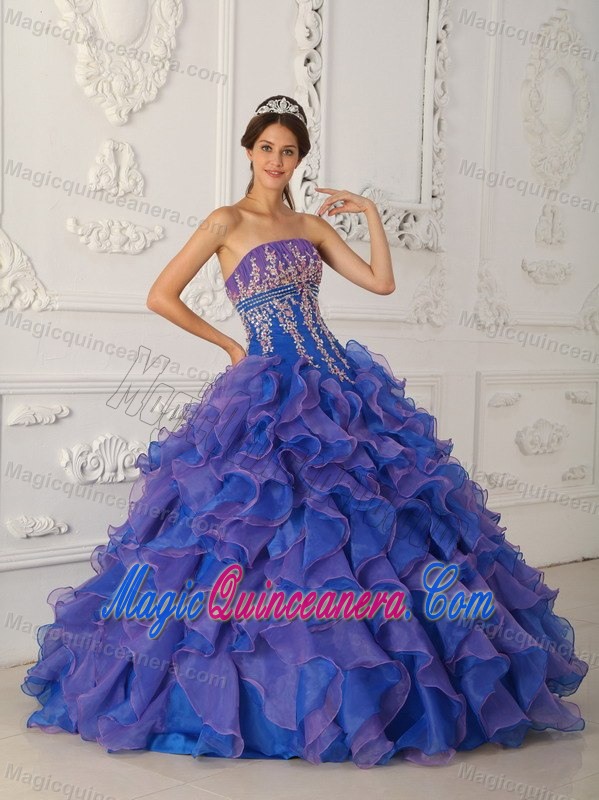most strapless quinceanera gown dresses for senior girls, Blue Beaded Ruffled Organza Appliques Quinceanera Dress in Auckland