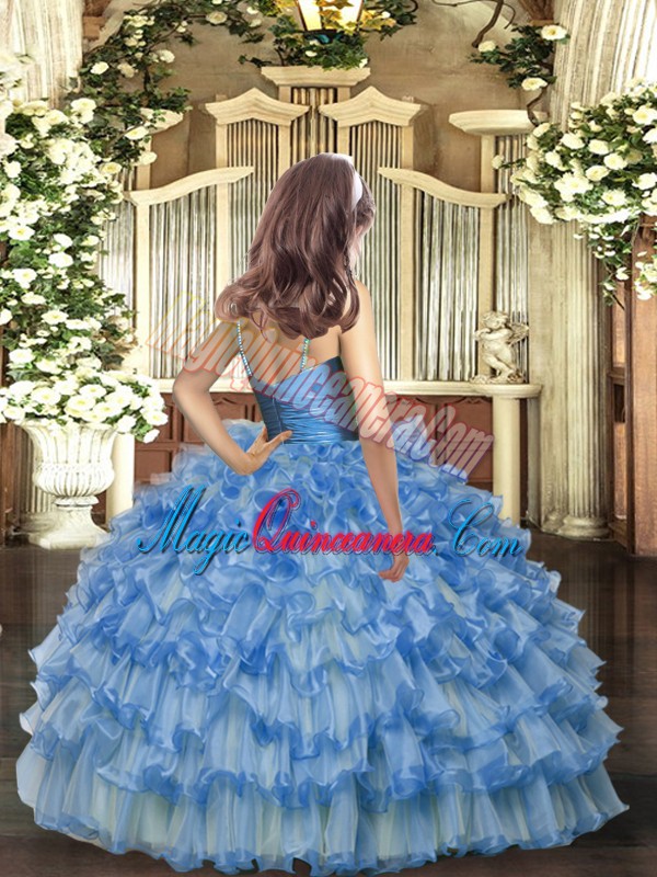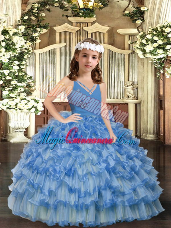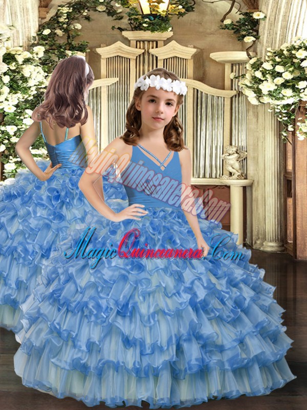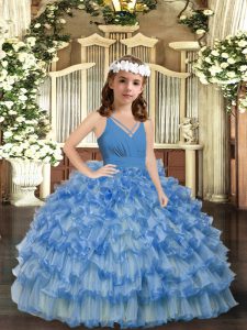 Blue Custom Made Pageant Dress Party and Wedding Party with Ruffled Layers V-neck Sleeveless Zipper