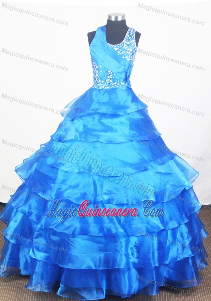 halter top baby girl pageant dresses, Blue Ruffled Layers Little Girl Pageant Dress Halter top Neckline