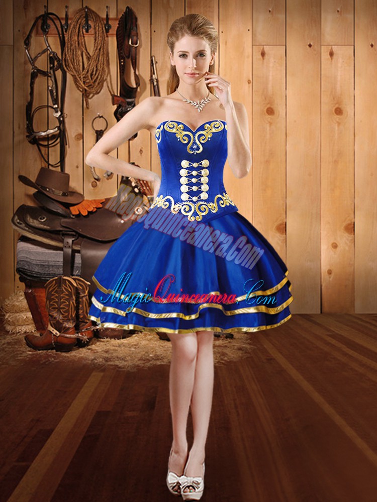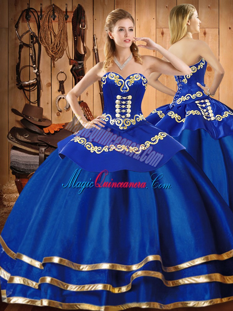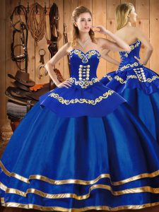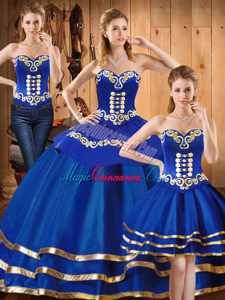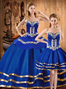 Blue Sleeveless Embroidery Floor Length Quince Ball Gowns
