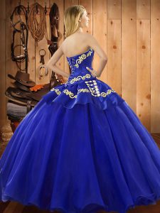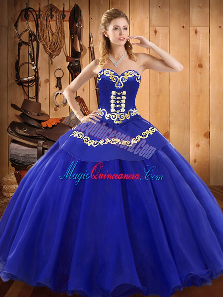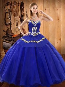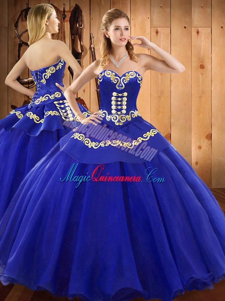 Blue Sleeveless Satin and Tulle Lace Up Sweet 16 Dress for Military Ball and Sweet 16 and Quinceanera