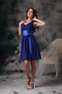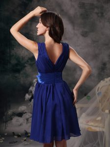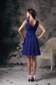 pretty royal blue v-neck 2017 2015 ruching carson city nevada ruching bridesmaid dama dresses, Blue V-neck Mini-length Chiffon Dama Quinceanera Dresses in Dunedin