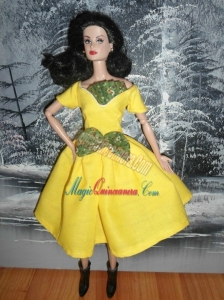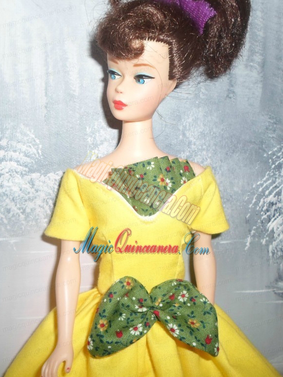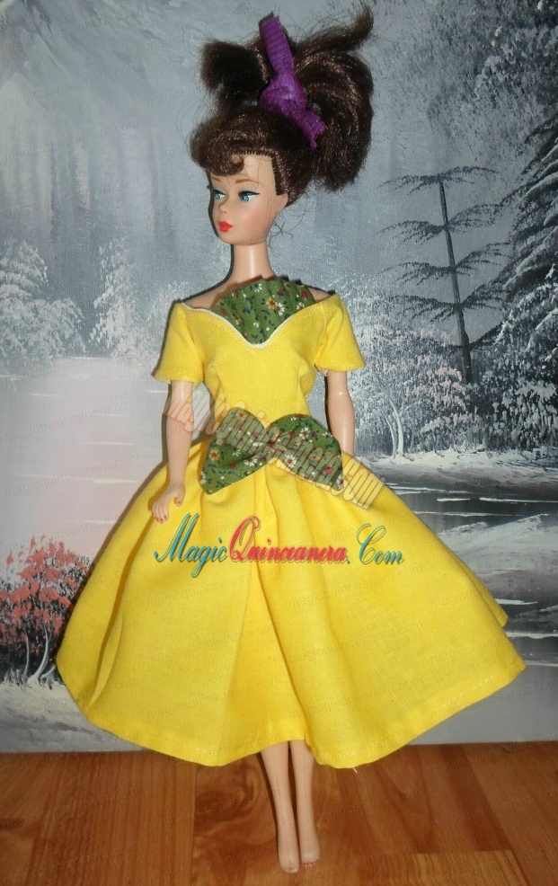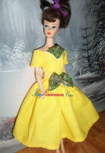 , Bowknot Yellow Short Princess Party Clothes Barbie Doll Dress