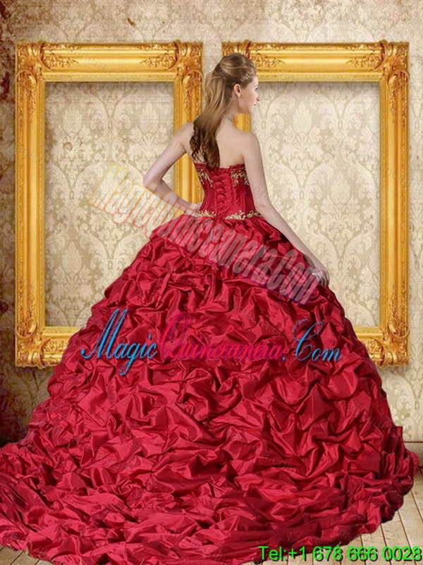 , Brand New 2015 Popular Wine Red Brush Train Quinceanera Dress with Sweetheart