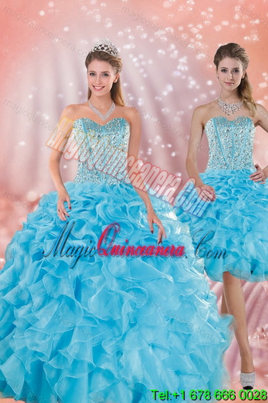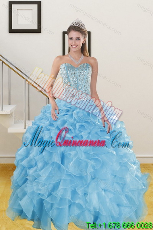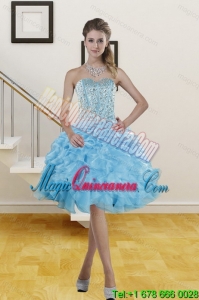 , Brand New Baby Blue Quince Dresses with Beading and Ruffles