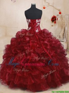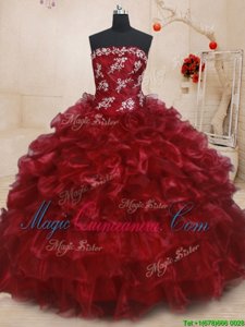 Burgundy Strapless Neckline Beading and Ruffles and Ruffled Layers Ball Gown Prom Dress Sleeveless Lace Up
