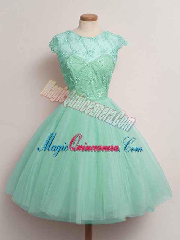 Cap Sleeves Lace Up Knee Length Lace Dama Dress for Quinceanera