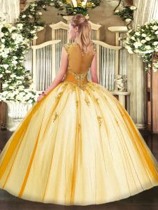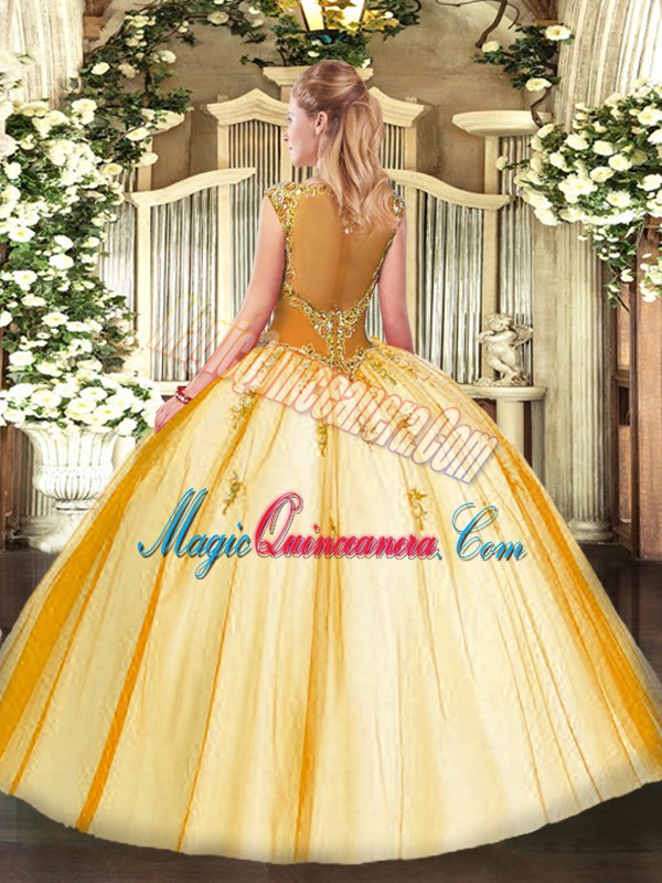 Cap Sleeves Zipper Floor Length Beading and Appliques Quinceanera Dress