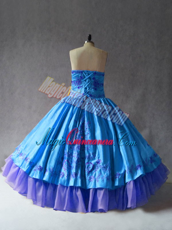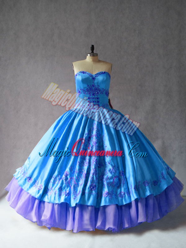 Captivating Blue Sweetheart Neckline Embroidery Quinceanera Dresses Sleeveless Lace Up