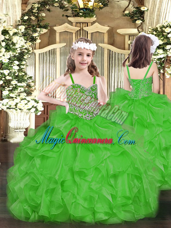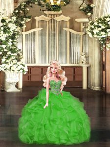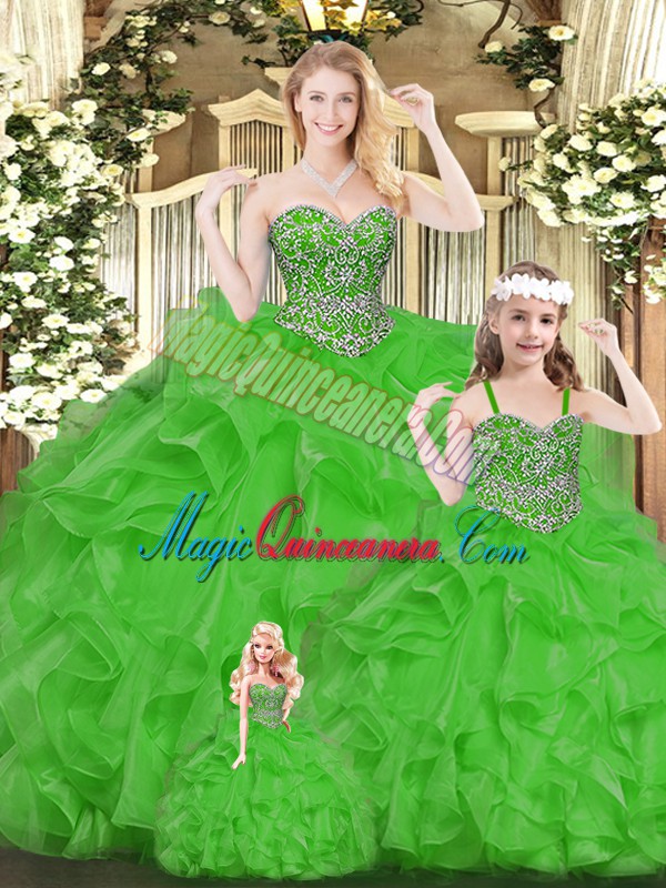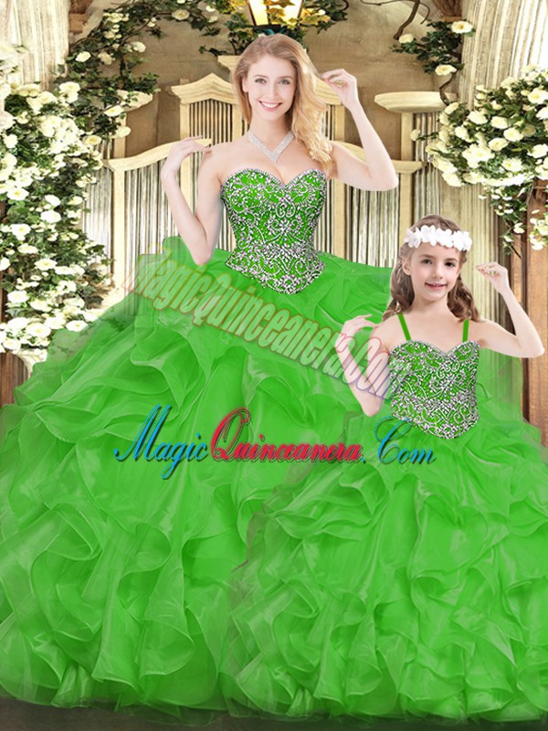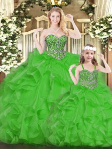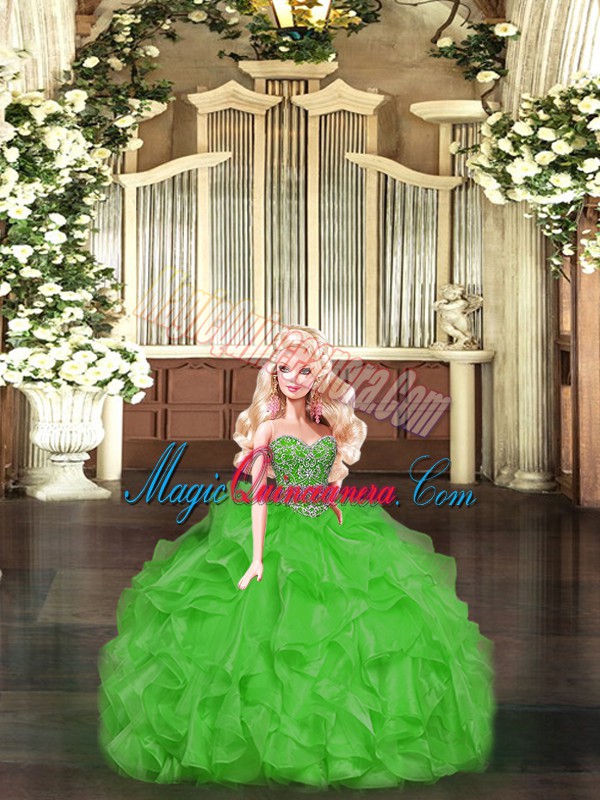 Captivating Green Organza Lace Up Sweetheart Sleeveless Floor Length Vestidos de Quinceanera Beading and Ruffles