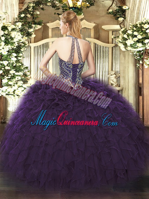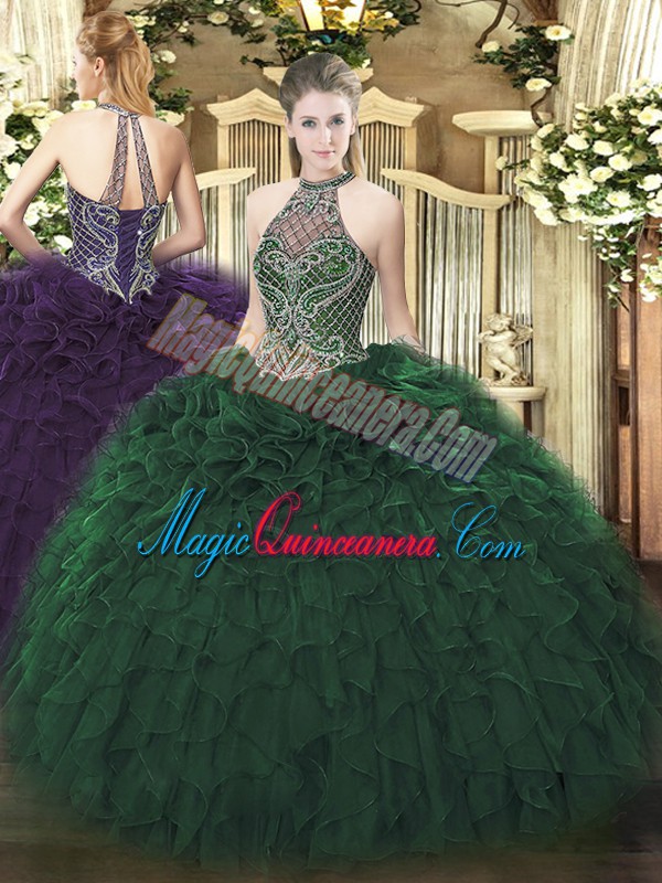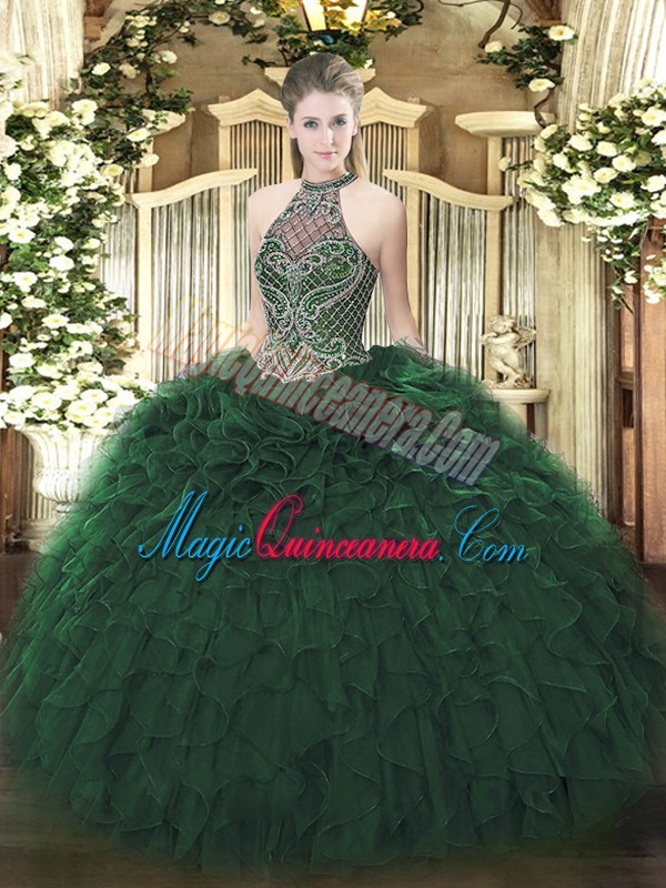 Captivating Halter Top Sleeveless Taffeta Sweet 16 Dresses Beading and Ruffles Lace Up