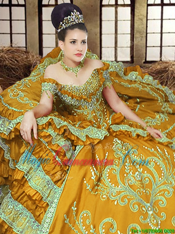 Captivating Off the Shoulder Sleeveless Embroidery Lace Up Ball Gown Prom Dress
