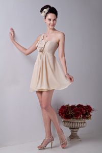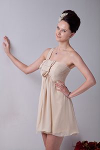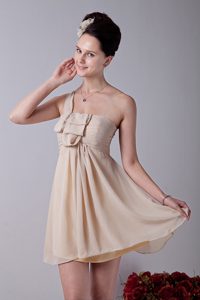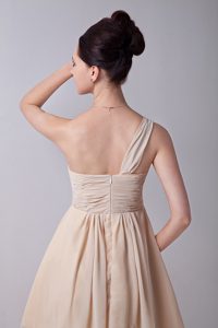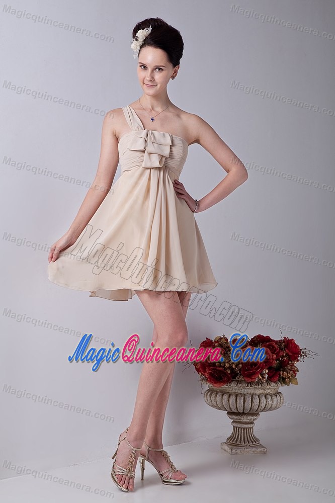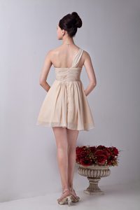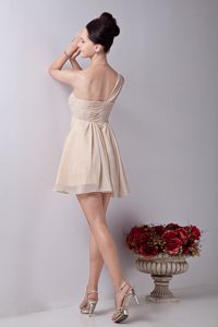 Champagne One Shoulder Mini Length Dama Dress for Quinceaneras