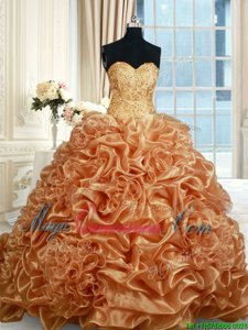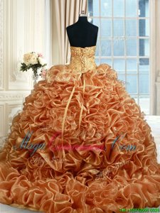 Champagne Organza Lace Up Quinceanera Dresses Sleeveless Brush Train Beading and Ruffles and Pick Ups