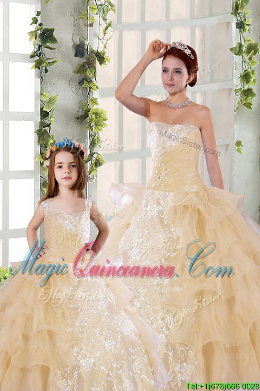 You're reviewing: Champagne Vestidos de Quinceanera Military Ball and Sweet 16 and Quinceanera and For with Beading and Ruffled Layers and Ruching Strapless Sleeveless Lace Up