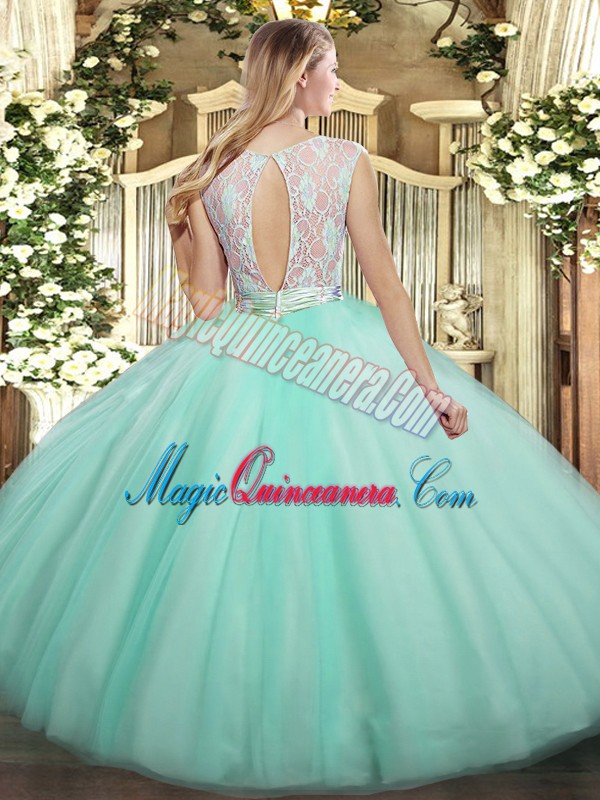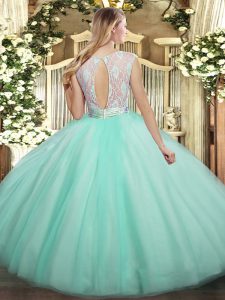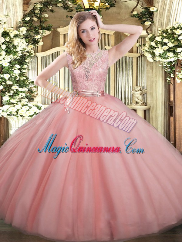 , Charming Baby Pink Sleeveless Lace Floor Length Quinceanera Gown