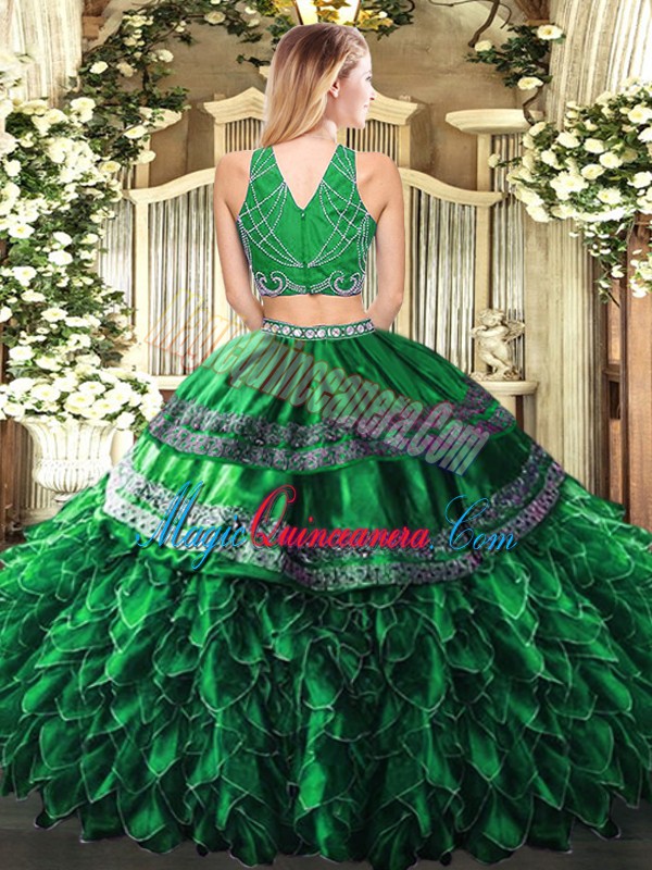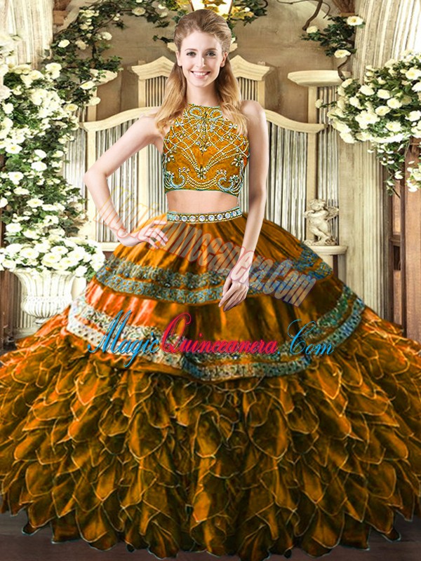 Charming Floor Length Zipper Ball Gown Prom Dress Brown for Military Ball and Sweet 16 and Quinceanera with Beading and Ruffles - Magic Quinceanera