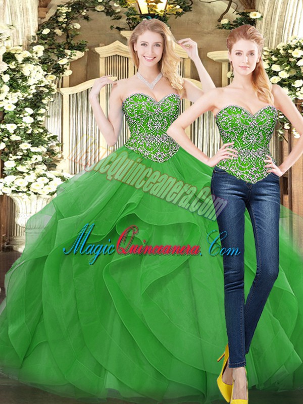 Charming Green Sweetheart Neckline Beading and Ruffles 15 Quinceanera Dress Sleeveless Lace Up - Magic Quinceanera