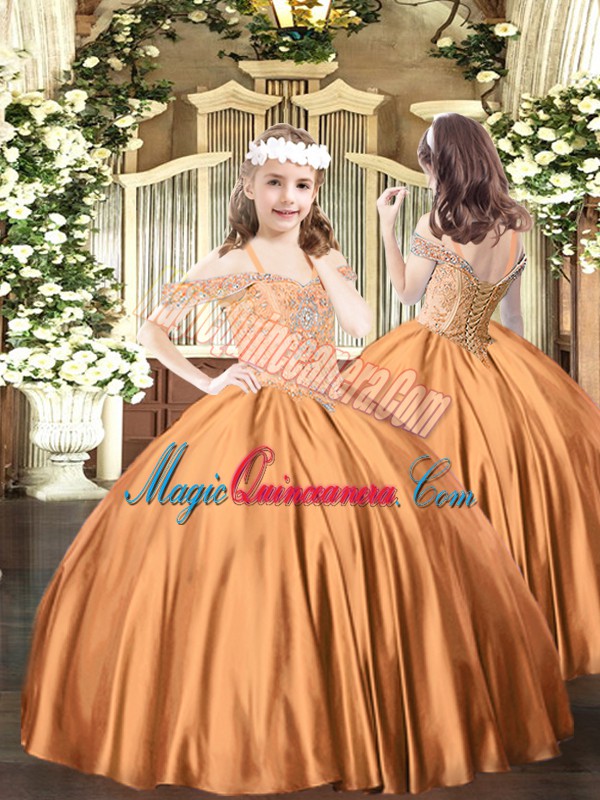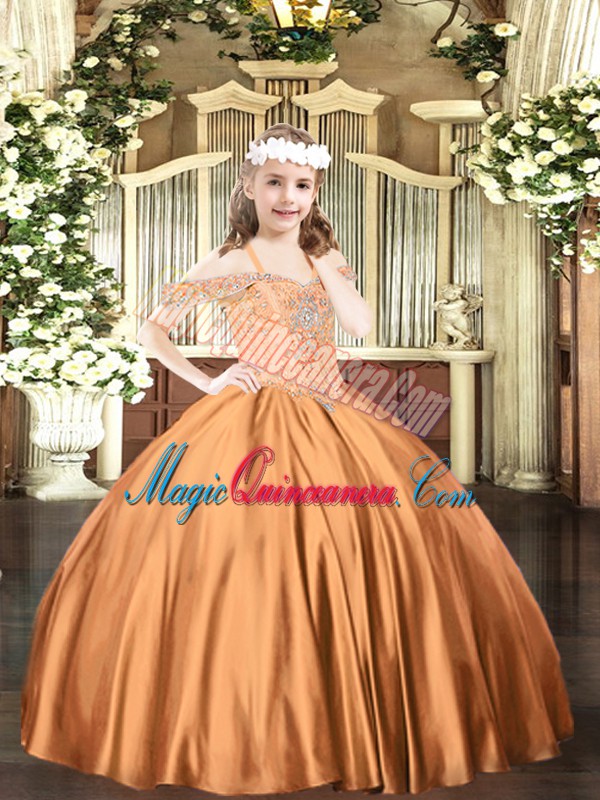 , Charming Satin Sleeveless Floor Length Girls Pageant Dresses and Beading