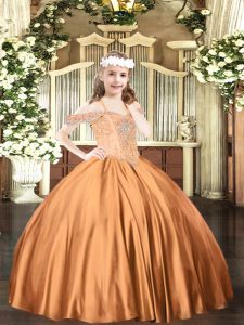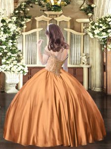 Charming Satin Sleeveless Floor Length Girls Pageant Dresses and Beading