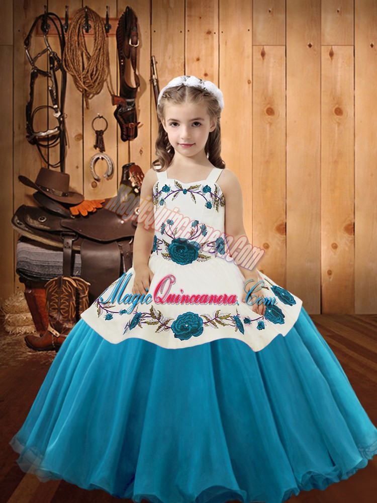 Charming Teal Sleeveless Organza Lace Up Pageant Dress for Teens for Sweet 16 and Quinceanera