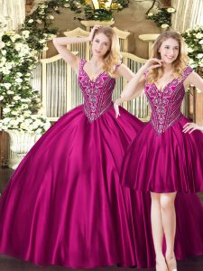 Charming V-neck Sleeveless Tulle Ball Gown Prom Dress Beading Lace Up