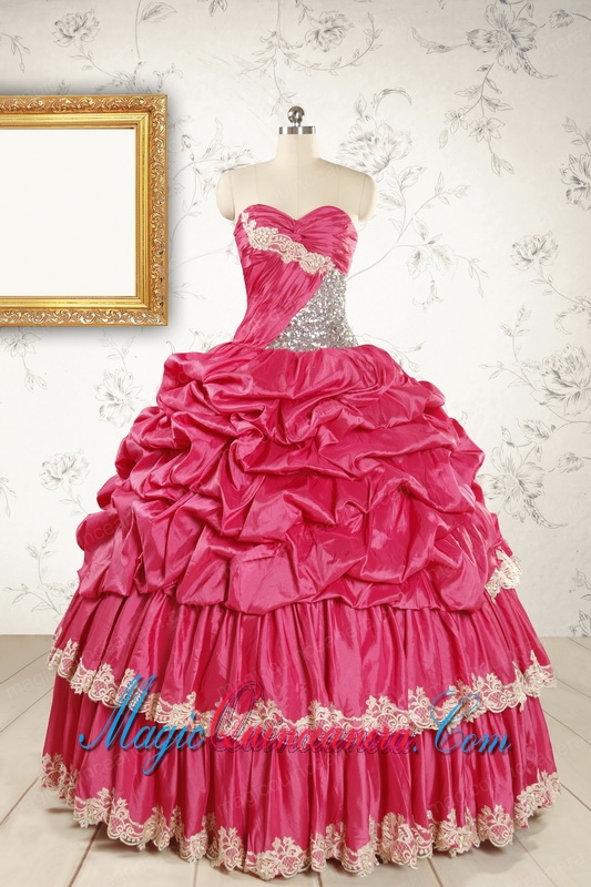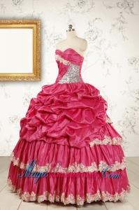 Cheap Appliques Sweet 15 Dresses in Coral Red