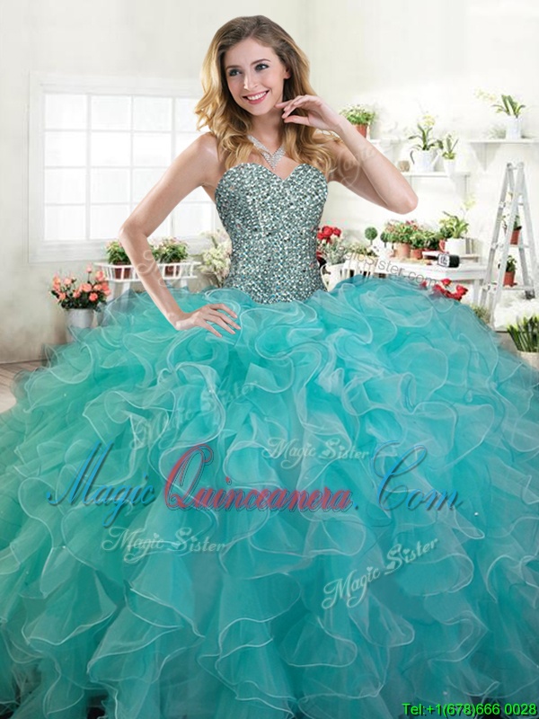 Cheap Ball Gowns Vestidos de Quinceanera Turquoise Sweetheart Organza Sleeveless Floor Length Lace Up