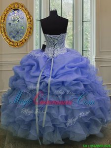 Cheap Blue Sweet 16 Quinceanera Dress Military Ball and Sweet 16 and Quinceanera and For with Beading and Pick Ups Sweetheart Sleeveless Lace Up