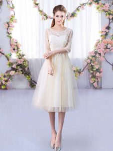 Cheap Champagne Lace Up Scoop Lace Dama Dress Tulle Half Sleeves