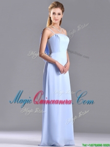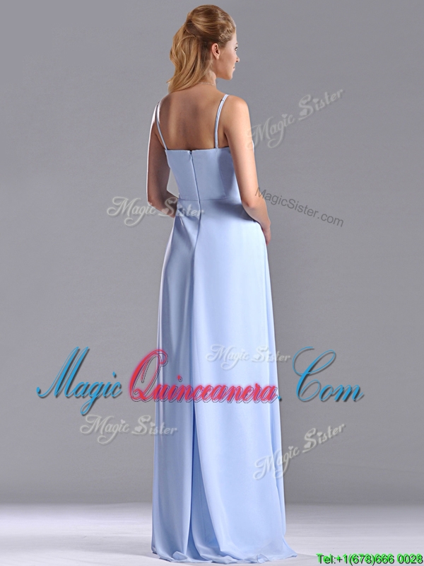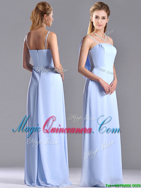 Cheap Chiffon Spaghetti Straps Long Dama Dress with Zipper Up