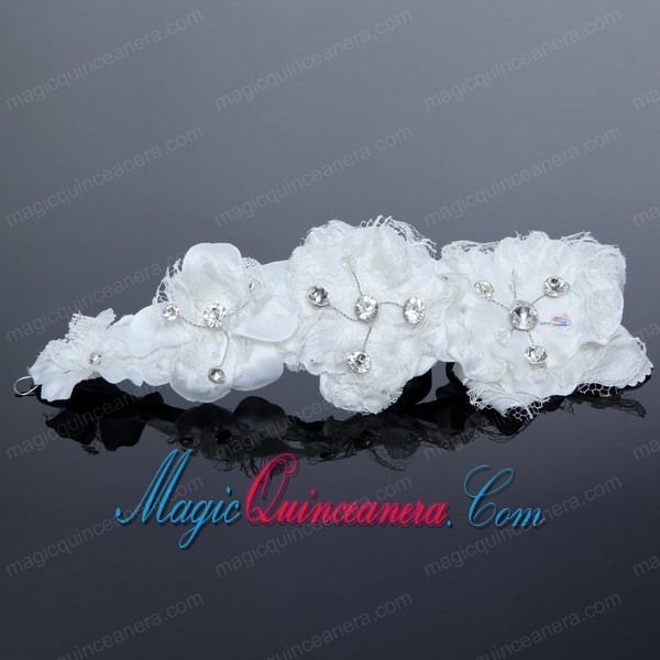 Cheap Eelgant White Lace Hair Flower with Beading