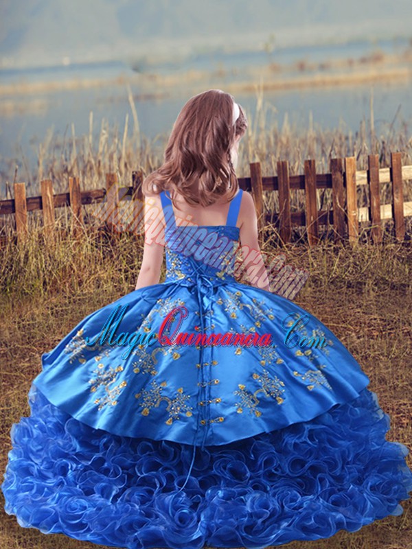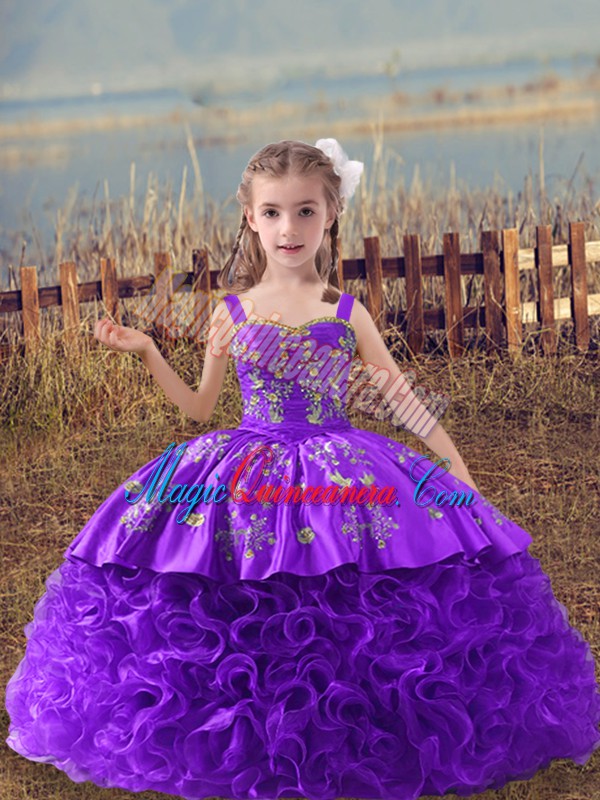 , Cheap Embroidery Glitz Pageant Dress Lavender Lace Up Sleeveless Sweep Train