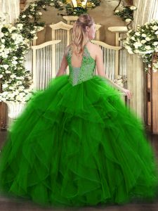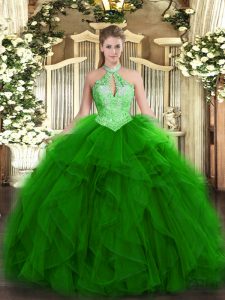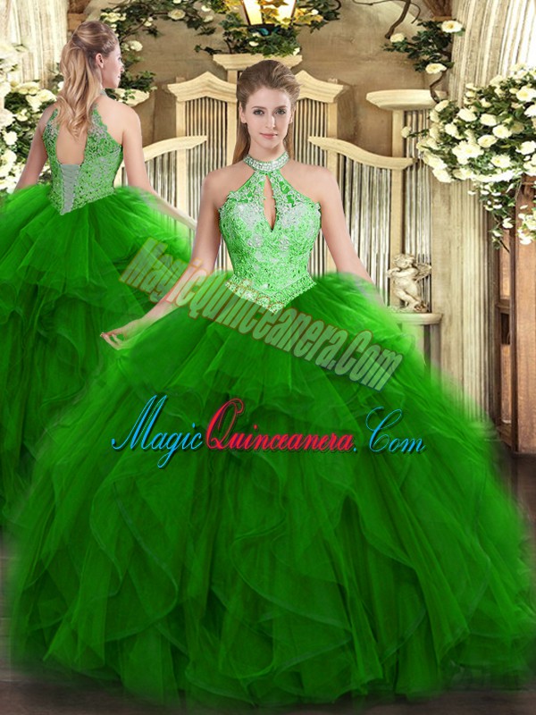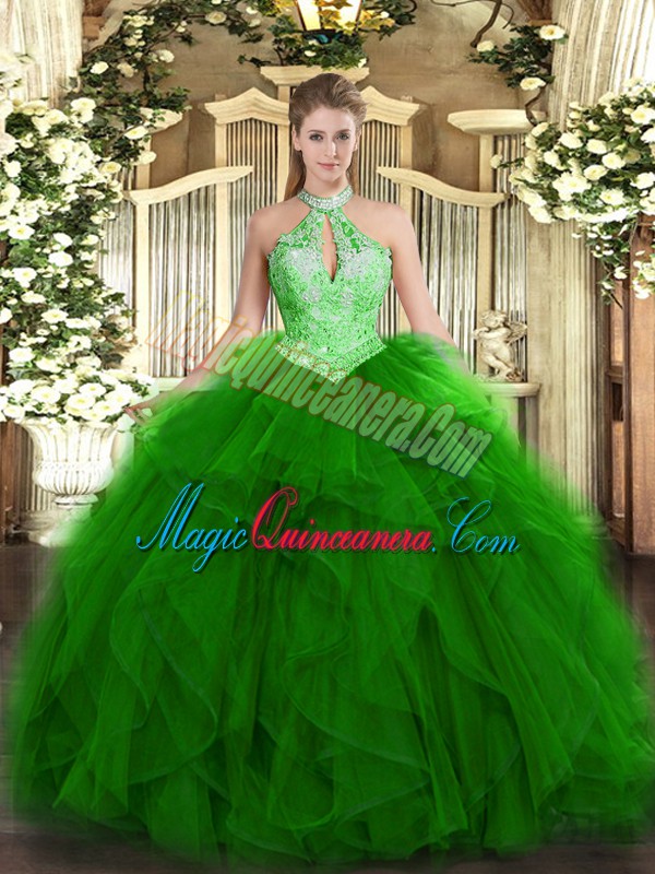 Cheap Floor Length Ball Gowns Sleeveless Green Quinceanera Dresses Lace Up