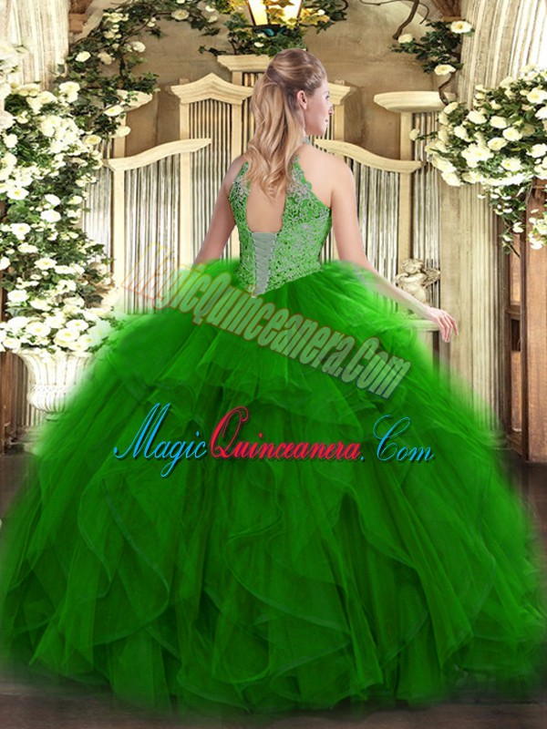 , Cheap Floor Length Ball Gowns Sleeveless Green Quinceanera Dresses Lace Up