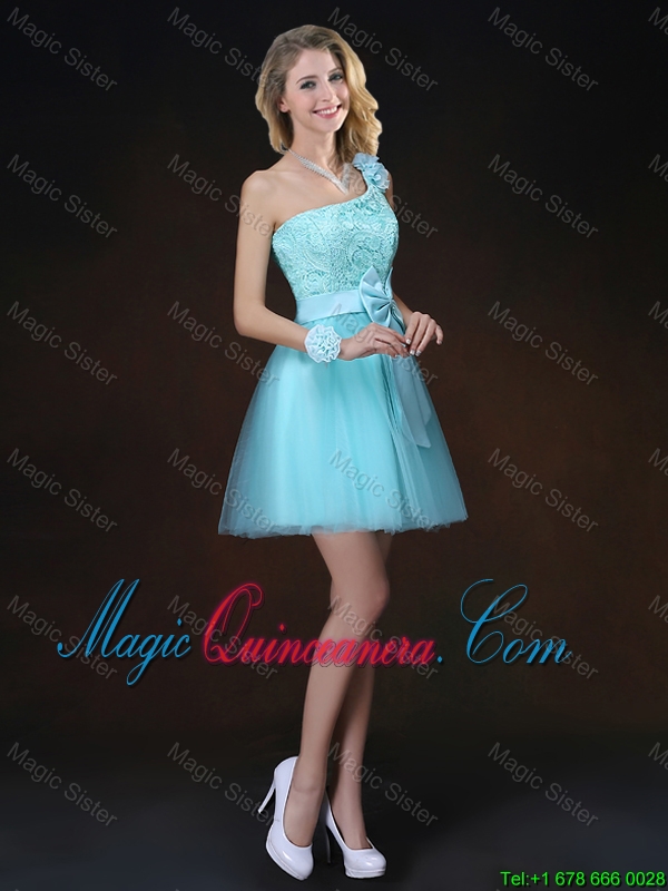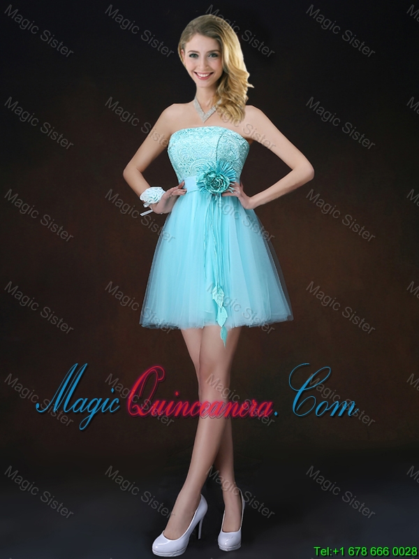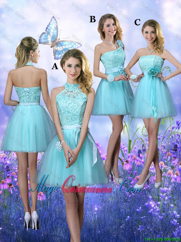 Cheap Lace Short Dama Dresses in Aqua Blue